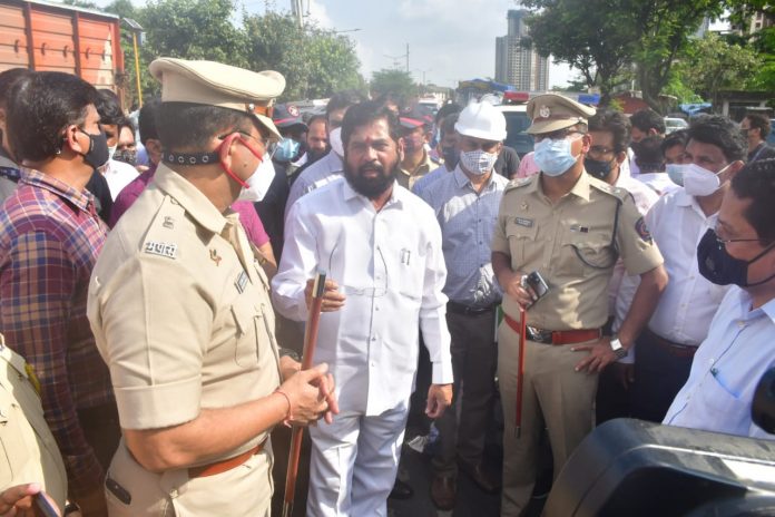 सततचा पाऊस आणि रस्त्यांच्या दुरवस्थेमुळे गेले चार-पाच दिवस ठाणेकरांना वाहतूककोंडीचा सामना करावा लागत आहे. याची गंभीर दखल घेऊन पालकमंत्री शिंदे यांनी आज ठाणे महापालिका, एमएसआरडीसी,एमएमआरडीए,सार्वजनिक बांधकाम विभाग,मेट्रो आणि एनएचएआय आदी संबंधित विभागाच्या अधिकाऱ्यांसह आनंदनगर चेकनाका ते गायमुख तसेच पडघ्यापर्यंतच्या रस्त्यांची आणि खड्डे बुजवण्याच्या कामाची पाहाणी केली. ठाण्याचे प्रवेशद्वार असलेल्या आनंदनगर चेकनाक्यापासून शिंदे यांनी पाहाणीला सुरुवात केली. तिथे सर्व संबंधित अधिकाऱ्यांशी बोलताना त्यांनी या प्रकरणी कोणाचीही गय करू नका, असे निर्देश ठाणे महापालिका आयुक्त डॉ. विपिन शर्मा यांना दिले. संबंधित रस्ता महापालिकेचा आहे की,एमएमआरडीएचा आहे की,एमएसआरडीसीचा याच्याशी सामान्य नागरिकांना काहीही देणेघेणे नाही. ठेकेदार रस्त्याचे काम नीट करत नसेल, तर त्याच्यावर लक्ष ठेवण्याचे काम अधिकाऱ्यांचे नाही का, साहित्य नीट वापरले जात आहे की नाही, पुरेसे वापरले जात आहे की नाही, ठरवून दिलेल्या दर्जानुसार काम केले जात आहे की नाही, हे पाहाणे संबंधित अधिकाऱ्याचे काम आहे. यात कुचराई होत असेल तर कठोर कारवाई केली जाईल.ठेकेदाराला खड्डे बुजविण्यासाठी पैसे दिले जातात ना, तो फुकट तर काम करत नाही ना, मग पैसे देऊनही कामाचा दर्जा राखला जात नसेल तर जबाबदार कोण, असा सवाल करून शिंदे यांनी पावसाळ्याआधी खड्डे बुजवूनही पुन्हा खड्डे कसे पडले,याची संपूर्ण चौकशी करून संबंधित ठेकेदार आणि अधिकाऱ्यांवर कारवाई करा, असे निर्देश महापालिका आयुक्तांना दिले.